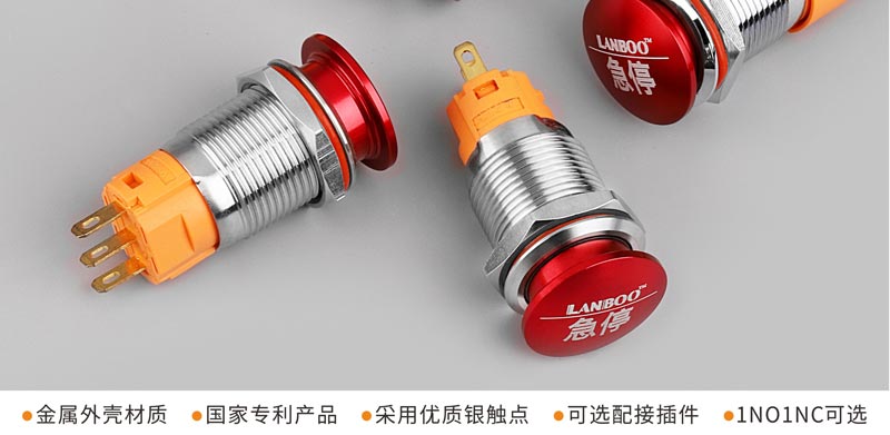 開孔16mm急停鈕,自鎖款;防塵/耐腐蝕/耐溫;開關觸點類型為:1NO1NC;